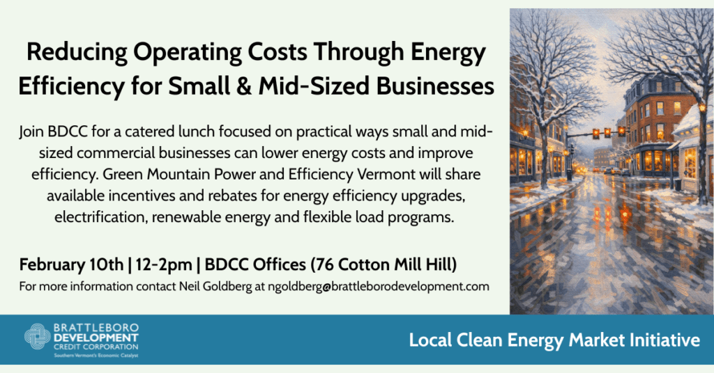 BDCC is pleased to be partnering with the Town of Brattleboro on this effort and will provide the Town with a $50,000 subgrant to support its portion of project implementation. The Town of Brattleboro will focus on residential engagement, outreach, and education, particularly with low-income households, while BDCC concentrates on the financing and market-development components of the work.