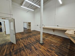 Unit A-335 offers 1,758 square feet of flexible space conveniently located adjacent to the freight elevator. With double-door entry directly across from the elevator, this suite provides excellent accessibility for tenants needing easy loading and transport.