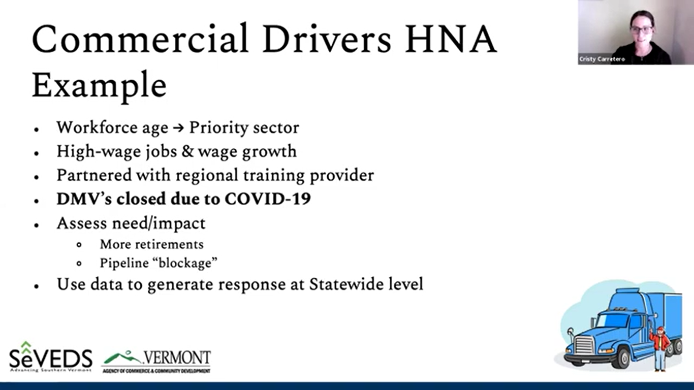 In 2017, Alex and a team of Vermonters traveled to Washington D.C to be trained in TPM as part of a statewide initiative to understand workforce demand across the state. TPM is a demand-driven workforce development framework used to assess real-time business needs, identify relevant training partners, and develop stronger education pipelines that help job-seekers succeed in the workforce. This framework serves as a foundational pillar of the BDCC’s Hiring Needs Assessment initiative.