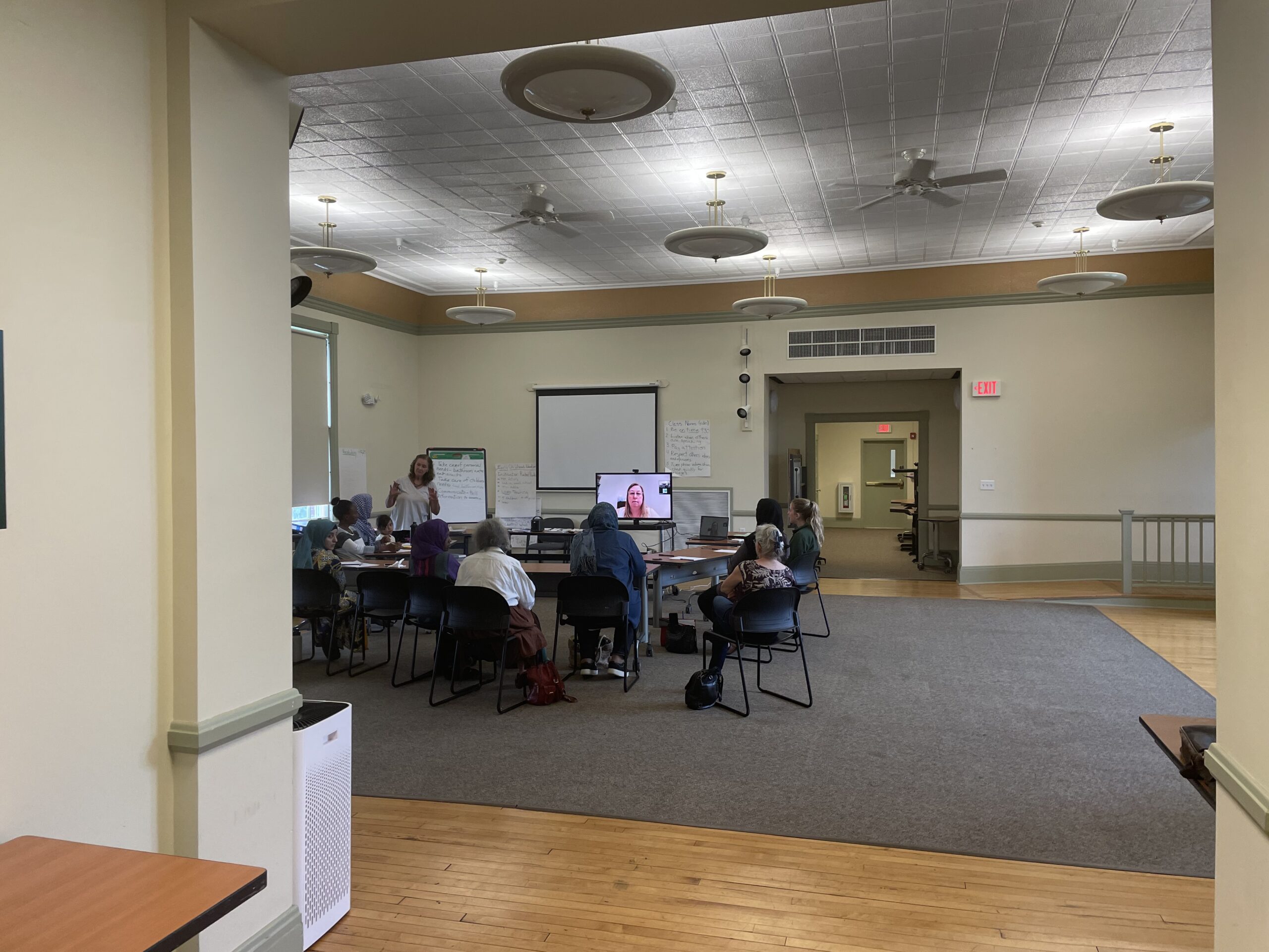 Sixteen students enrolled in the initial preparatory course for the VECF-funded BDCC pilot program in spring 2023. BDCC brought on an English Language Learner (ELL) teacher, Julie Dolan from World Learning in Brattleboro, to deliver a six-week language intensive focused specifically on the vocabulary used in the Fundamentals for Early Childhood Professionals course. The class met twice a week at the Multicultural Community Center of Southern Vermont, a branch office of the Ethiopian Community Development Council (ECDC). Two translators attended each class, one for Pashto and Dari and another for French, in order to facilitate communication with students from Afghanistan, Eritrea, and the Central African Republic.