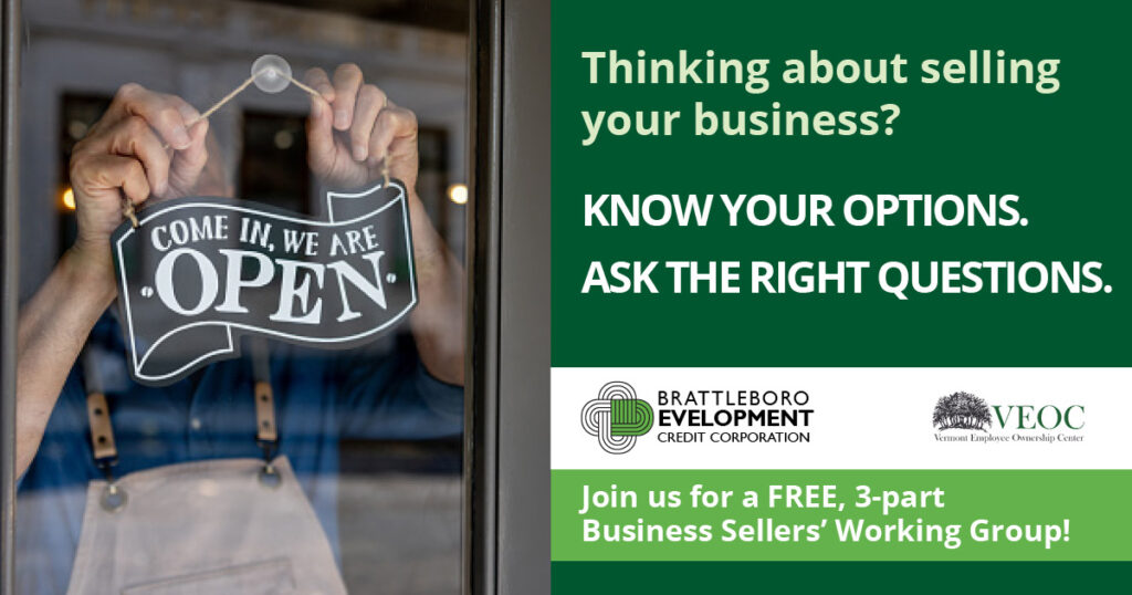 Are you thinking about buying a business, selling a business, or transitioning a business to employee ownership. You’re invited to attend a free, three-part Working Group, co-hosted by BDCC and the Vermont Employee Ownership Center (VEOC) and supported by Vermont Small Business Development Center (VtSBDC) and statewide specialty advisor, Sergio Alvares. These Working Groups are […]