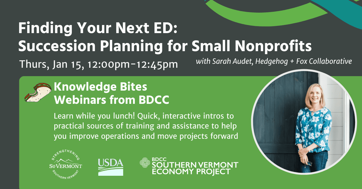 For small organizations, finding a new leader can be a difficult process, especially in a rural region with a small workforce to draw on. Lacking the capacity for full-blown executive search, what’s an org to do? Can you hire someone with intersectional experience and train them to be great for the job? Can you create processes that pave the way for promoting from within? Come discuss strategies that work for smaller orgs, whether blindsided by a sudden departure or unsure what to do as a director approaches retirement.