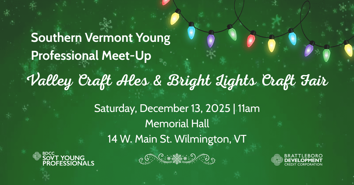 Celebrate the holiday season with Southern Vermont Young Professionals in beautiful Wilmington. Enjoy the annual Bright Lights Craft Fair at Historic Memorial Hall (14 W Main St, Wilmington, VT) and then grab some pizza and a drink at Valley Craft Ales.