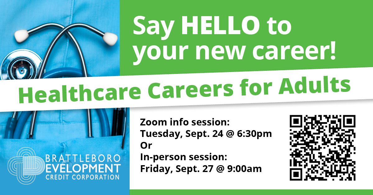 Brattleboro, VT — Are you stuck in a rut in your current job, or simply looking to make a change? Brattleboro Development Credit Corporation (BDCC) is offering a free workshop, “Healthcare Careers for Adults,” to help you take the first step toward a rewarding new career in healthcare.