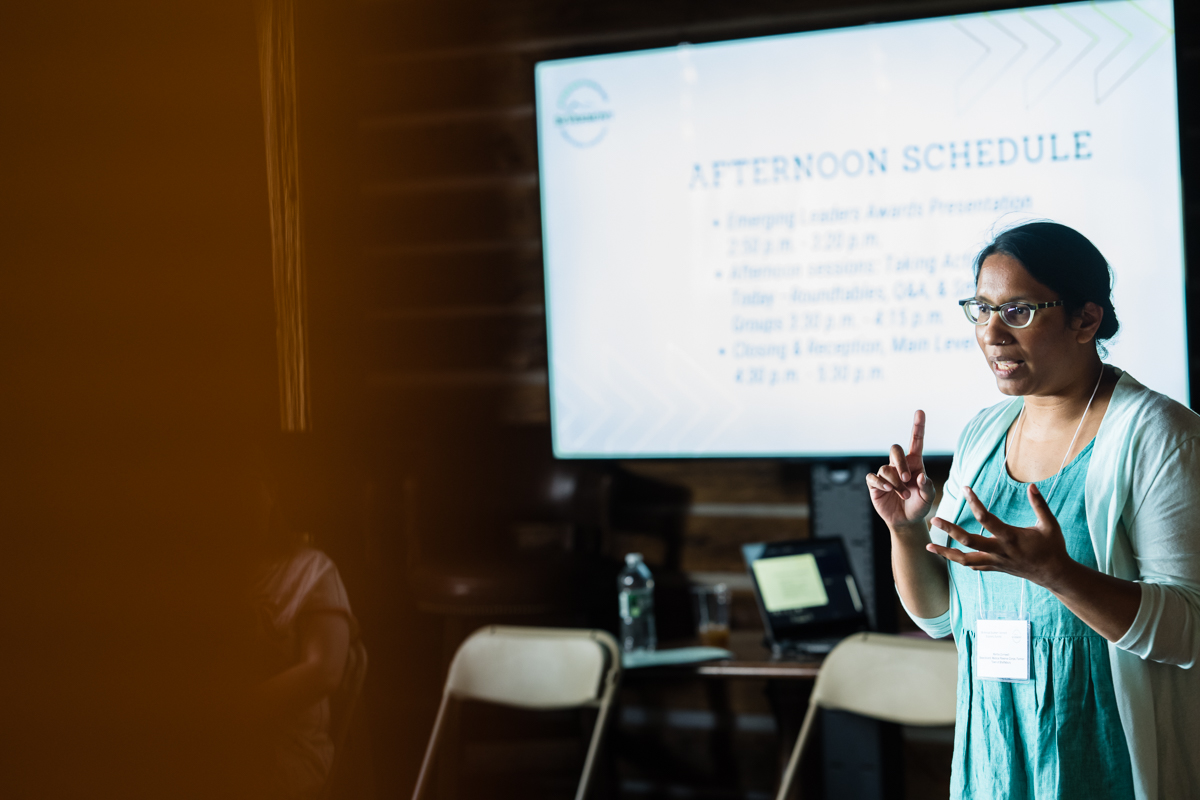 Above: Shaftsbury Select Board member Martha Cornwell speaking at the Southern VT Economy Summit | Photo: Kelly Fletcher