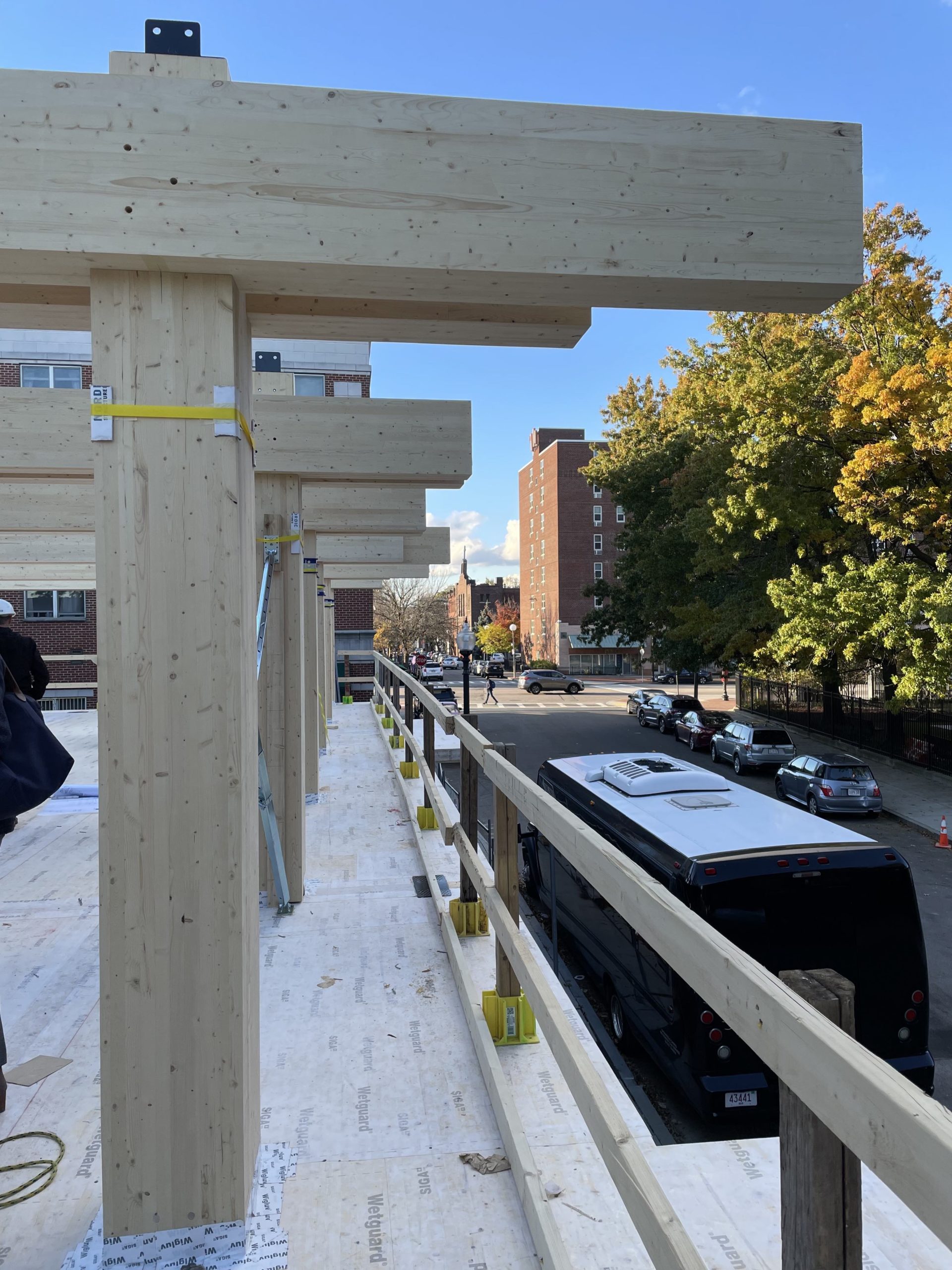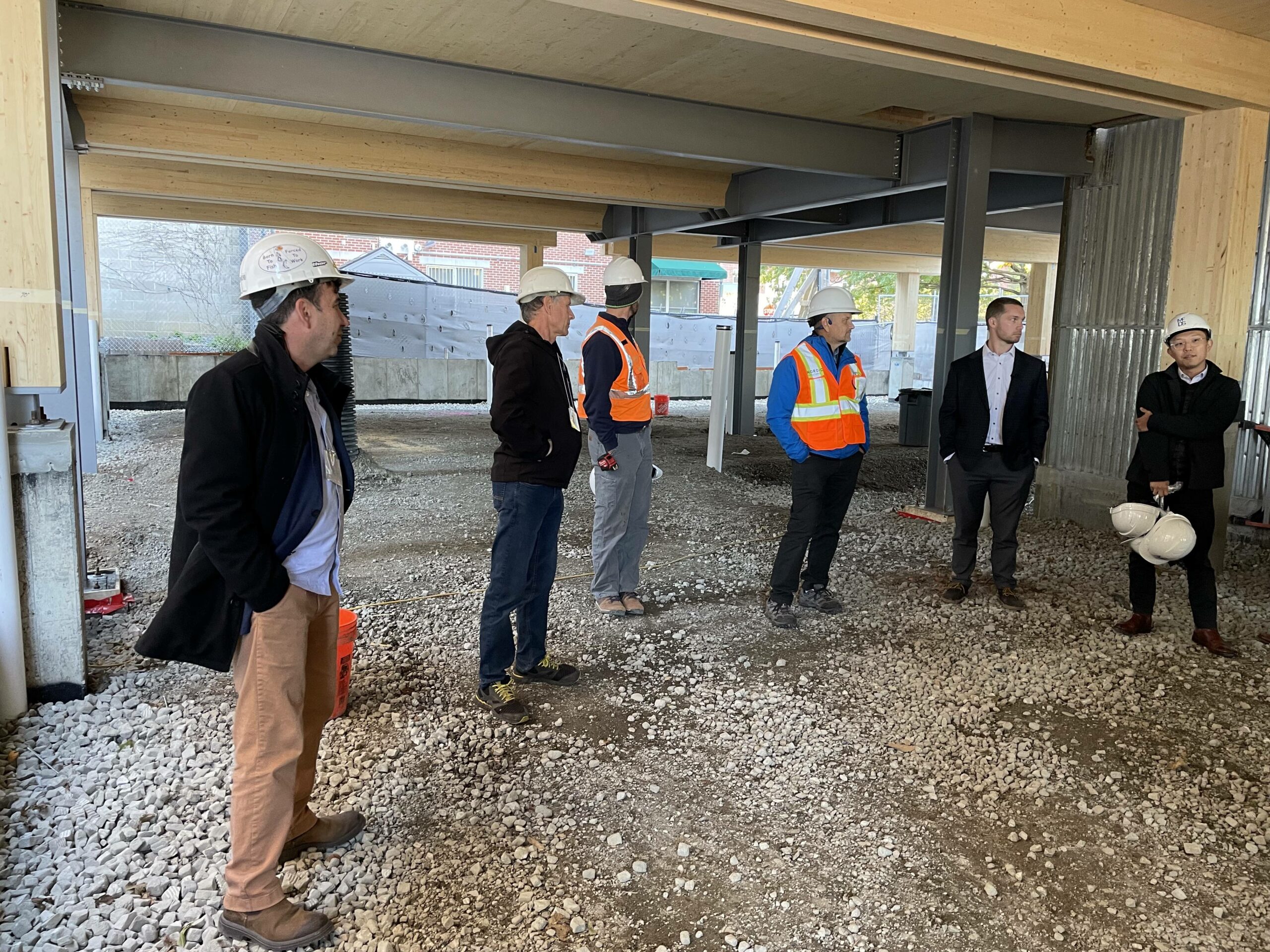 In early November a group of engineers, architects, economic developers, and company representatives toured a tall-wood building in Boston. With the Canadian border reopening, it was an opportunity for cross-border partners to come together and see first-hand the progress on a historic building project. The seven story apartment project in Boston’s Lenox Hill will be almost entirely built of cross-laminated timber beams and posts. In addition to the aesthetic and architectural advantages, this form of building offers simpler on-site construction and therefore lower costs. Mass timber buildings also have the potential to replace concrete and steel in mid-sized urban buildings. This change would dramatically transition construction away from building materials that have a negative climate impact (concrete production is one of the main producers of carbon dioxide) towards renewable, carbon-sequestering building materials.
