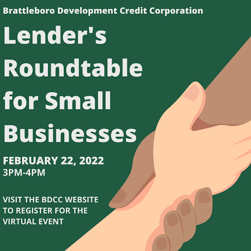 Brattleboro, VT – On February 22, Brattleboro Development Credit Corporation is hosting a roundtable event that brings together commercial lenders with business owners to discuss loan programs and application requirements. Loan officers will be available to answer any questions. Local business owners are invited to join this event to learn how financing may help achieve your business goals. The event is virtual (via Zoom) and will take place on February 22nd from 3pm to 4pm. Register now.