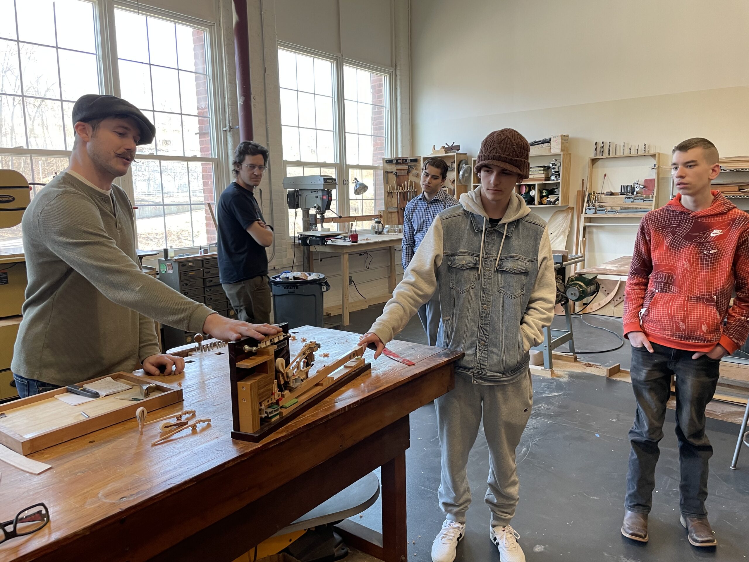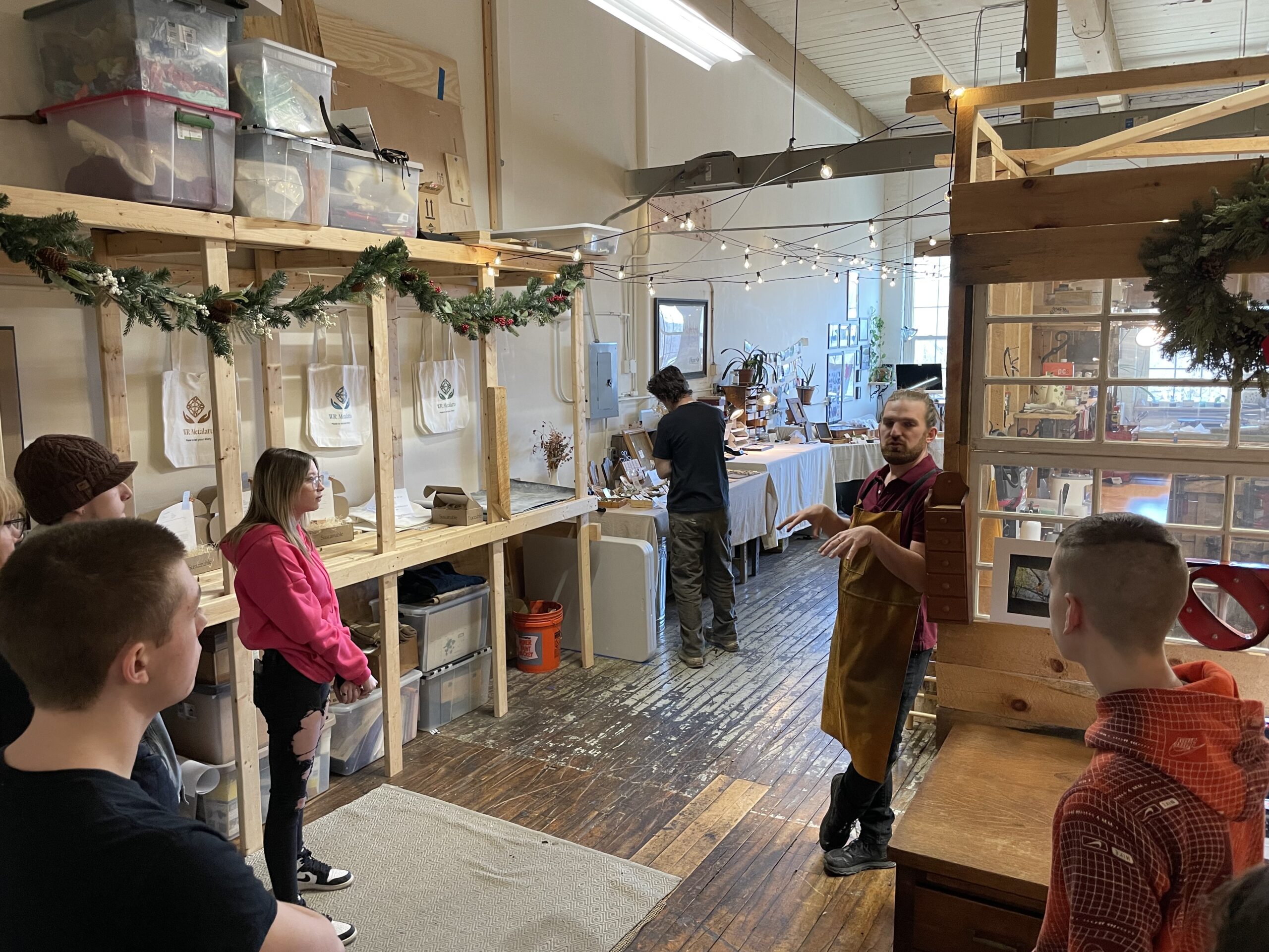 With guidance from BDCC’s property team members, Dan Floyd and Owen Perry, students visited with four small business owners who have space in the Cotton Mill: Will Alderfer from W.R. Metalarts, Patrick Branstetter from Old Timey Piano Craft, David Eichelberger from Two One Ceramics, and Franklin Chrisco from True North Granola.