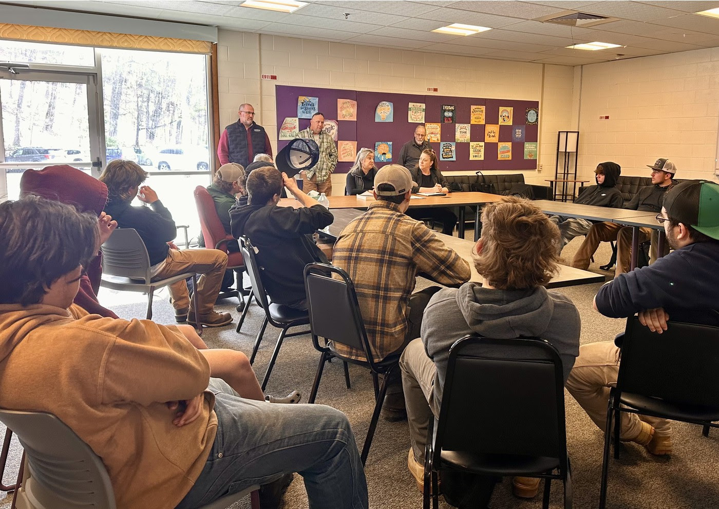 On Wednesday, March 12th, we welcomed professionals from the Brattleboro Development Credit Corporation’s Pipelines and Pathways (BDCC), Casella Talent Acquisition, Green Mountain Power and an instructor from Northeast Driver Training School to meet students interested in obtaining their Commercial Driver License (CDL). 17 BFUHS students, in grades 9-12 all gathered to learn more about high wage and high growth jobs requiring a CDL. Our students discovered many different opportunities locally and nationally for work in a variety of settings; including electrical line work, delivery, recycling, solutions, energy and more.